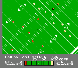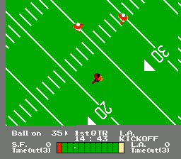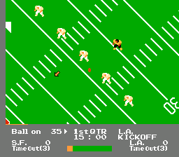 任天堂携NES游戏《橄榄球比赛(NES Play Action Football)》进军橄榄球赛场。虽然任天堂并未获得NFL官方授权,但他们获得了NFL球员协会的授权,因此游戏中可供选择的8支球队(均以NFL球队所在城市命名)都配备了1989赛季的真实职业球员。当主力球员疲惫时,你甚至可以用替补球员替换“技术”位置(四分卫、跑卫、外接手、近端锋和自由安全卫/强卫)。
