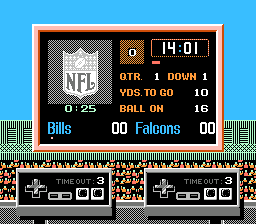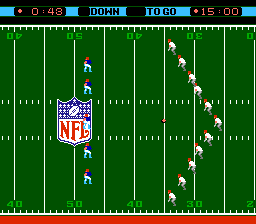 玩家以横版卷轴视角操控游戏。镜头还会放大,以便玩家观察接球时的特写镜头。此外,《NFL》也是一款非常注重策略和教练指导的游戏,它拥有庞大的战术手册(球队战术印在游戏手册附带的单独折叠页上,但游戏内不会显示)、有限的球队技能自定义选项以及犯规机制。