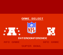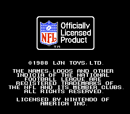 《NFL》是一款基于美国国家橄榄球联盟(NFL)职业橄榄球比赛的游戏,也是首款获得NFL官方授权的8位主机游戏。不过,它并未获得NFLPA(美国国家橄榄球联盟球员协会)的授权,这意味着游戏中包含了28支真实的NFL球队,但不会显示球员的姓名或头像。
