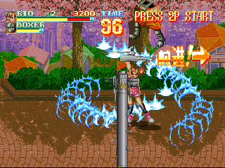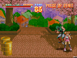 《热血家族》(Nekketsu Oyako)是一款横版卷轴动作游戏,风格类似《快打旋风》(Final Fight),尤其注重在每个关卡中寻找和拾取武器。游戏中有三位可玩角色:冴子的丈夫,前职业摔跤手兰度;他们身为格斗天才的女儿莉绪;以及冴子游手好闲的研究助理,箕轮虎太郎。每个角色都有自己的属性和特殊能力,而且两个玩家还可以同时进行游戏。