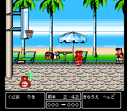 这款游戏采用与系列其他游戏相同的基础引擎和画面,以变形的精灵为特色,在横向卷轴的关卡中移动,试图击败对方队伍。你可以传球、投篮,还可以尝试超级扣篮来获得额外分数。与其他热血系列游戏一样,你可以选择用赤手空拳或任何你能在关卡中找到的武器痛击对手。此外,还有许多其他打破规则的功能,例如双环和三环,可以额外得分。