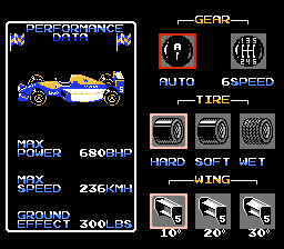 每场比赛开始前,玩家都可以自定义下压力、齿轮比、轮胎选择和燃油量——进站换胎是长距离比赛的标配。16位版本还包含一个独特的“与曼塞尔一起进步”模式,在该模式下,奈杰尔的数字化头像会出现在屏幕右上角,提供指导和鼓励。