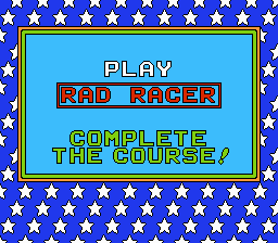 第二款游戏是《Rad Racer》的第一关,使用328 Twin Turbo赛车。玩家必须尽快完成关卡。游戏画面不显示时间,但卡带内部会进行计时。完成《Rad Racer》后,会显示其分数,乘以10,然后加到之前《超级马里奥兄弟》的分数上。