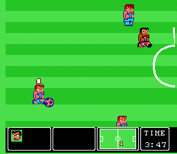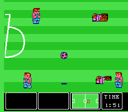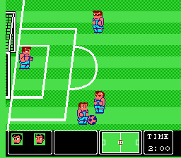 这款足球游戏诞生于任天堂推出四人适配器的时期,很可能就是为四人游戏而设计的。这一点在选择双人或多人游戏模式时体现得尤为明显。玩家可以选择多种不同的场地材质,例如冰面、草地和石板地,这大大提升了游戏的可玩性。