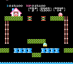 这款游戏玩法非常简单。主角“牛奶”必须收集屏幕上的所有水果,才能解救被困在房子里的女友(别问我他们是什么关系)。你的对手“坚果”会想方设法阻止你达成目标。为了收集水果,牛奶需要爬上梯子,跳到不同的平台上。