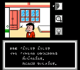 除了以表意文字表示的常见命令,包括用于聆听 NPC 的耳朵和用于移动到不同区域的鞋子外,还有一些独特的基于上下文的命令,包括一个灯泡,允许玩家阅读主角内心深处的想法,以获取有关他们当前情况的更多信息。此外,玩家通过角色扮演游戏中常见的自上而下的俯瞰世界视图四处移动。