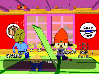 凭借着罗德尼·格林布拉特【Rodney Greenblat】打造的极为可爱的图像风格,七音社的这款奇怪的小游戏讲述了名为啪拉啪的嘻哈狗长久以来想要获得自己好友桑妮·梵尼【Sunny Funny】青睐的故事。游戏中的出场人物,是一群令人印象深刻的怪人和奇人,从啪拉啪的音乐导师——一间本地空手道道场的馆主洋葱手刀大师【Chop Chop Master Onion】到长期折磨啪拉啪的驾校教练墨索里尼【Mooselini】,都可以称得上是历来电子游戏中最特别的登场角色。