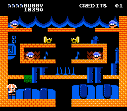 两位主角必须清除一系列屏幕上的坏蛋——这些坏蛋的造型比《彩虹岛》里的愤怒毛毛虫要奇特得多——并且还要收集各种各样的道具。