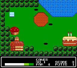 除第 5 个球场有 8 个球洞外,每个球场均有 9 个球洞。与典型的迷你高尔夫不同,这些球场中有很多移动障碍物。游戏中一个独特的机制是超级击球。每次挥杆时,挥杆杆的白色部分上都会随机出现一个“S”形圆圈。如果您将挥杆杆拉到该圆圈下方,您的高尔夫球将飞得更高,并能够越过障碍物。