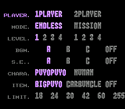 游戏提供无尽单人模式、双人模式(第一个填满圆柱体的玩家输)和任务模式。任务模式会为玩家提供多个预先填充的游戏区域,并设定一个任务,例如一次性消除最少数量的 puyo,或者消除所有特定颜色的 puyo。