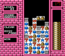 《帕青嫂(Puzslot/パズロット)》是一款老虎机和俄罗斯方块结合的游戏。掉落的方块随机滚动着图案,只有落下后才能确定图案是什么,这个设定虽然有趣但也给玩家带来了较高的游戏难度。