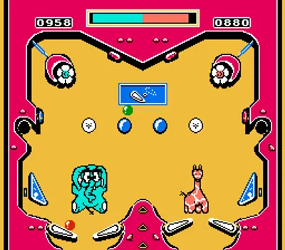 《滚球弹珠柜》(Rollerball) 带你体验前所未有的弹珠台盛宴!游戏以摩天大楼为背景,呈现多达4个画面的震撼场景,让每一次弹射都充满惊喜。创新加入的双人对战模式,让玩家可以一较高下,先达目标分数者即为赢家。更有趣的是,NES版本巧妙融入了美国政治元素——以民主党的驴子和共和党的大象作为玩家代表(这不就是经典的"驴象之争"吗?)。而在FC版本中,俏皮的羊驼取代了驴子,为游戏增添了更多趣味性。快来感受这场弹珠与策略的精彩碰撞吧!