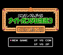 《SD高达外传3:传说骑士团(SD Gundam Gaiden - Knight Gundam Monogatari 3 - Densetsu no Kishi Dan/SDガンダム外伝 ナイトガンダム物語3 伝説の騎士団)》是在NES/Famicom平台上发行的《SD高达外传:骑士高达物语》系列的第三部也是最终作。本作的故事与其他两部作品完全不同。故事发生在同一个世界,但角色并非重合,所以你不会看到阿姆罗或骑士高达。相反,你会以高达的风格认识圆桌骑士!
