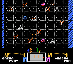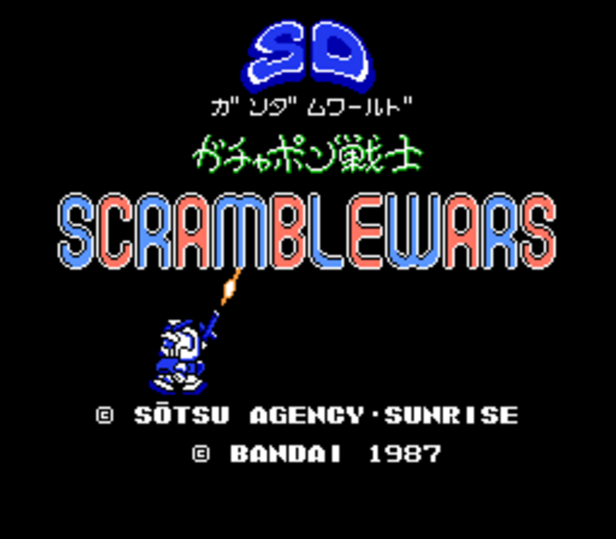 《SD高达世界:高达战士混乱大战(SD Gundam World: Gachapon Senshi - Scramble Wars/SDガンダムワールド ガチャポン戦士 スクランブルウォーズ)》最初于日本 FC 光盘系统平台发售,是 SD 高达扭蛋战士系列中首款将回合制策略与街机动作战斗相结合的作品。玩家指挥 SD 高达部队,每个场景的目标都是击败所有敌方单位或占领敌方首都。玩家在回合制模式下于战略地图上移动战斗单位。占领的城市和殖民地可以为建造新单位提供资金。当敌对单位在同一方格内相遇时,就会触发实时街机风格的战斗,玩家将直接操控 Q 版机甲,目标是击败敌方机甲。游戏包含多个不同的战场,战场的选择取决于战略地图上敌方单位交战的地形。游戏提供十张不同的地图(场景),支持单人游戏或双人对战。