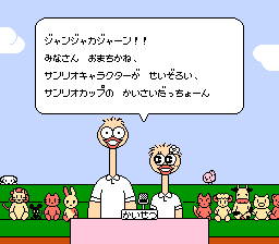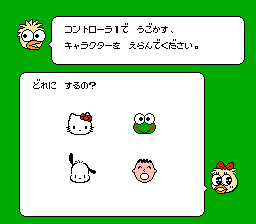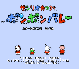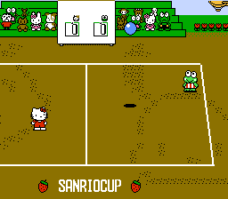 《动物排球赛(Sanrio Cup - Pon Pon Volley/サンリオカップポンポンバレー)》是一款类排球游戏,拥有许多流行的三丽鸥角色,包括 Hello Kitty、Keroppi 和 Minna no Tabo。比赛可以由两名、三名或四名玩家进行。玩家可以在三种不同的背景音乐曲目之间进行选择,或者简单地在没有音乐的情况下进行游戏。
