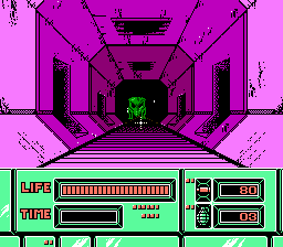 《影之空间(Space Shadow Hyper Shot / スペースシャドー ハイパーショット)》 是万代于 1989 年为 Famicom 开发和发行的一款光枪游戏。这是一款轨道科幻游戏,灵感来自科幻恐怖电影《异形》。玩家沿着八角形走廊走下去,射击任何从侧通道或天花板中爆发出来的敌对外星生命。