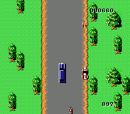 《间谍猎手(Spy Hunter)》起源于街机,是一款俯视视角的驾驶动作游戏。你的车配备了机枪,可以帮助你摆脱路上的众多敌人(但要小心,别误伤平民!)。偶尔你会遇到一辆武器运输车,如果你撞上车厢,你的车就会装备第二种武器(例如烟雾弹、油渍或导弹)。道路在某些路段会分岔,你可以进入船坞,暂时将你的车变成一艘船。如果你行驶足够远,季节也会发生变化(冬季要小心冰雪路面!)。敌方车辆会不择手段地阻止你,包括把你逼出路面、从豪华轿车后座扫射,或者从直升机上投掷炸弹。