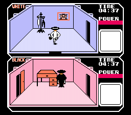 黑衣间谍和白衣间谍要在时间铃响前智取对方。你需要搜遍大使馆的各个房间,找到所需的物品(金钱、护照、秘密计划和机场门钥匙)。这些房间包括办公桌、文件柜和其他家具。你还可以巧妙地在各个房间里设置陷阱来挫败对手(例如,在梳妆台抽屉里放置炸弹)。陷阱可以用房间里找到的物品解除(例如,用墙上壁炉里的水桶就能解除炸弹)。当所有物品都装进秘密公文包后,前往机场入口。