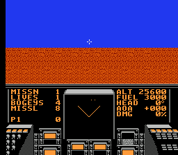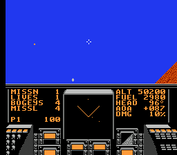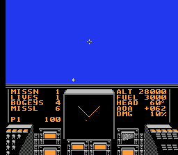 每个任务的目标是击败固定数量的敌机。目标始终是空中目标。可用的武器包括一门机炮(弹药无限)和导弹(每个任务8枚)。如果敌人发射导弹,玩家可以在每场任务中使用一次隐身模式(按下开始键)来躲避。一旦玩家脱离危险区域,隐身模式将自动关闭。如果玩家完美完成任务,则会进入奖励关卡,玩家需要尽可能多地击落敌人。