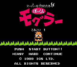 《打地鼠(Super Mogura Tataki!! - Pokkun Mogura/スーパーもぐらたたき ぽっくんモグラー)》是一款基于经典游乐场/街机游戏“whac-a-mole”的 Famicom 动作游戏。目标是击中鼹鼠,因为它们从地面上的八个不同位置探出头来,然后迅速低下头。