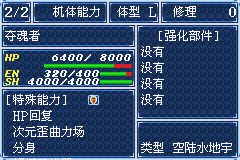 这是《超级机器人大战》系列在Game Boy Advance平台上推出的首款游戏。画面方面,本作与经典系列作品,尤其是《F》和《F Final》系列,有很多相似之处。战斗中的机体没有战斗动画,采用Q版造型。游戏玩法方面,本作是一款经典的战术角色扮演游戏,融合了众多日本机器人系列作品。与系列前作不同的是,本作引入了忠诚系统:机体通过支援攻击或防御来协助其他机体,每次支援都能提升自身的攻击力或防御力。此外,盾牌等防御道具现在拥有独立的生命值条。