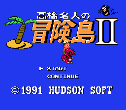 《高桥名人的冒险岛2(Takahashi Meijin no Bouken-jima II/高橋名人の冒険島II)》是一款由 Now Production 开发、Hudson Soft 发行的横向卷轴平台游戏 ,于 1991 年在任天堂娱乐系统上发布。它是《冒险岛》的续集,也是 FC/NES 系列的第二款游戏。虽然第一款游戏是根据世嘉的 《神奇男孩》 街机游戏改编而成的,但《冒险岛2》是原创作品,随后的大多数冒险岛游戏也是如此。1992 年,Game Boy 还发布了同名便携式版本。