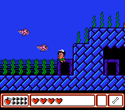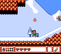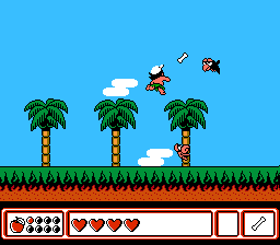 游戏开始时,主角在小屋外,女友向他挥手告别。他只带着可以向敌人投掷的骨头。与传统的“关卡”不同,希金斯探索的是整个岛屿。唯一的问题是,有些区域会被封锁,直到击败 Boss 后才可进入,而有些区域则需要我们获得必要的道具才能进入。这些道具可以通过击败 Boss 或赢得迷你游戏来获得。岛上散布着各种小动物,它们会向你发起特定迷你游戏的挑战。你首先会遇到的是打地鼠游戏,但也有射击场和比赛可以参加。