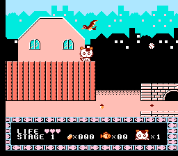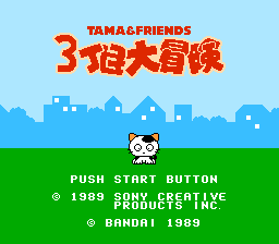 《猫咪大冒险(Tama & Friends - Sanchoume Daibouken/タマ&フレンズ)》是一款由万代于 1989 年发行,面向任天堂 FC 磁碟机平台的平台游戏。游戏改编自同名儿童漫画和动画,讲述了一个温馨社区里猫狗们的故事。该动画最终授权给 4Kids Entertainment,并在美国有线电视频道播出。
