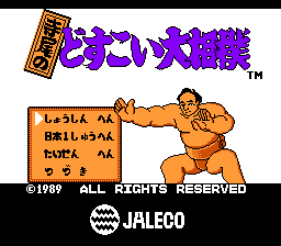 《寺尾大相扑(Terao no Dosukoi Oozumou/寺尾のどすこい大相撲)》是一款由 TOSE 为 Famicom 开发并于 1989 年由 Jaleco 在日本发行的相扑游戏。该游戏得到了职业相扑选手寺尾恒文的认可,他在该游戏发布的同一年就达到了关脇等级。