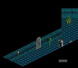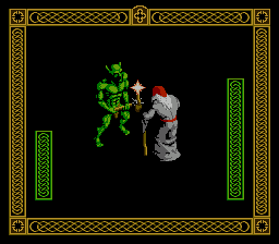 地牢里并非空无一人:一些友善的角色可能会提供有价值的信息或与你交易物品,而邪恶的敌人则会发动攻击。战斗采用一对一的模式——原版游戏在主地图上进行;主机和PC移植版则在专门的屏幕上进行。你的对手会在发动攻击前几秒发出提示,让你有时间做出相应的反应。你可以向左或向右闪避,也可以从这两个方向发起攻击。游戏没有存档功能,但你可以无限次地重新开始每个关卡。输入密码可以跳过某些关卡。