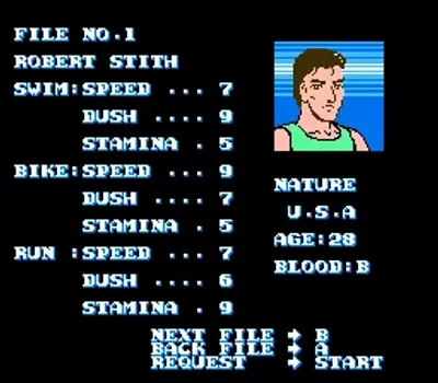 《铁人竞技》(The Triathron)是红白机上一款充满欢乐的铁人三项运动游戏。玩家需要通过快速连按按键完成游泳、骑行和马拉松三项挑战。在紧张刺激的比赛中,你将遭遇鲨鱼突袭、UFO干扰,还会在转弯处碰到突如其来的障碍物。这款游戏以独特的操作方式和意外频发的趣味关卡,为玩家带来轻松愉快的游戏体验,让每个参与者都能感受到运动竞技的别样魅力。