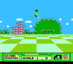 《立体大作战(Tobidase Daisakusen/とびだせ大作戦)》是一款第三人称游戏,视角在玩家身后,角色会“向前”移动,朝着屏幕方向前进。你唯一的技能就是跳跃。跳过坑洞、敌人,甚至跳上柱子。奖励道具散落在空中、柱子顶端和地面上。此外,游戏还支持 3D 效果,只需佩戴 3D 眼镜(原装盒内附赠)即可体验。