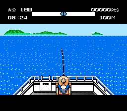在游戏中,三平正在通过捕获最大的蓝马林鱼来争夺“1988 年 Famicom 国际旗鱼锦标赛”的头奖。