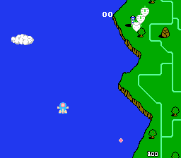 绿色和红色铃铛不能叠加。玩家还可以从地面收集其他强化道具,例如可以将飞船升级为三管炮的铃铛,以及可以摧毁屏幕上所有敌人的星星。