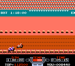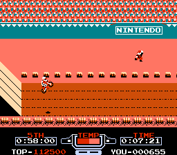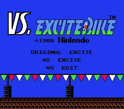 《火爆机车赛(VS. Excitebike/VS.エキサイトバイク)》并非同名的任天堂 VS UniSystem 街机游戏,而是任天堂娱乐系统(NES)游戏《Excitebike》的 FC 磁碟机强化版。主要区别在于新增了名为“Vs. Excite”的模式。在该模式下,两名玩家将进行竞速比赛。此外,还有一个名为“Original Excite”的模式,该模式基于街机版的主模式,但色彩搭配略有不同。得益于可重写磁盘格式,玩家无需使用 FC 数据记录器即可将比赛记录保存到磁盘。最后,所有音乐均已更换。