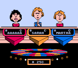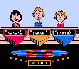 《幸运之轮:瓦娜·怀特版(Wheel of Fortune Featuring Vanna White)》是根据著名电视游戏节目改编的一系列游戏之一。游戏的目标是通过猜测字母来解开一个单词谜题。玩家轮流转动一个转盘,转盘上大部分格子都标有相应的金额,但如果转盘停在错误的格子上,玩家可能会破产。玩家可以猜测一个字母,如果该字母出现在谜题中,则这些格子会被翻转以显示该字母,玩家可以获得转盘上显示的金额乘以该字母出现的次数。只能猜测英语辅音字母——5个英语元音字母可以用玩家的奖金购买。