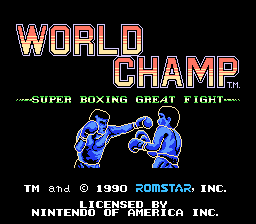 《世界冠军》(World Champ)是一款拳击游戏,与Data East的《拳王》(Ring King)有很多相似之处。游戏提供单人“排名”模式,玩家可以提升拳击手的各项属性,逐步攀升排名,最终挑战四个级别之一的冠军头衔。此外,游戏还提供双人对战模式,玩家可以与好友一决高下。锦标赛模式则允许最多8名玩家参与淘汰赛。