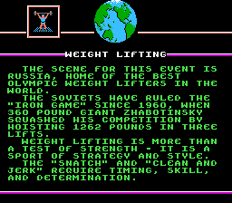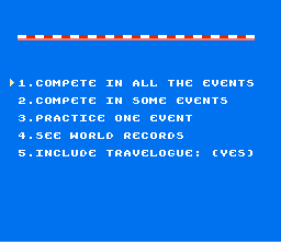 《世界运动会(World Games)》是一款奥运会风格的体育游戏,玩法偏向街机风格。玩家可以参加的项目包括: