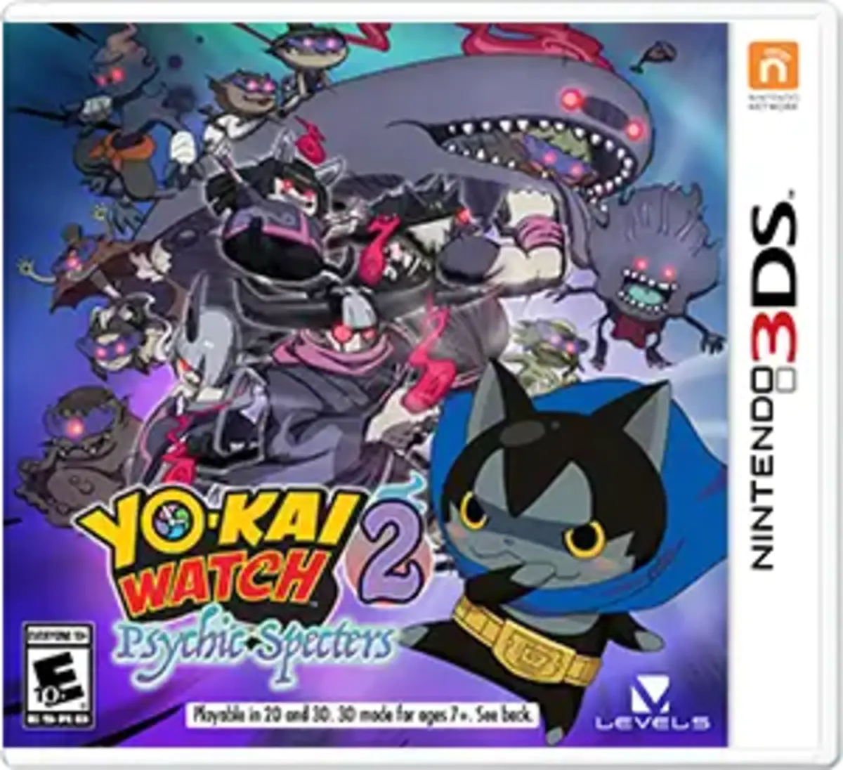 妖怪们是生活中各种麻烦的罪魁祸首,它们藏身于各个角落!探索海滨小镇圣凡塔斯蒂科和宁静的哈里斯维尔村,寻找这些调皮捣蛋的小家伙们。然后,与浮游喵一起穿越到60年前,确保妖怪手表零式被制造出来,并守护你的时间线!在线或通过本地无线**进行对战,赢取游戏内奖励。或者,你也可以在经过全面升级的四人合作模式“妖怪爆破”中操控一只妖怪!如果您拥有《妖怪手表™ 2:元祖》或《妖怪手表 2:本家》,您可以将 Nintendo 3DS™ 系列主机上的存档数据传输到《妖怪手表 2:真打》,并继续您上次的游戏进度。准备好迎接迄今为止最深入、最沉浸式的妖怪体验吧!